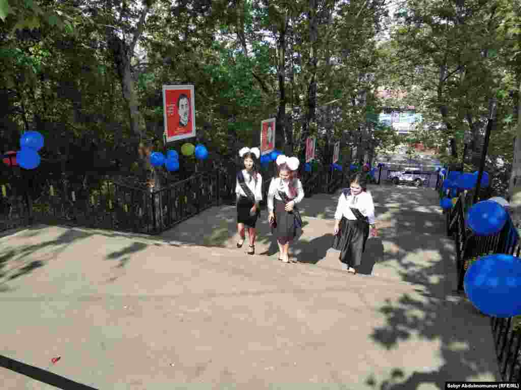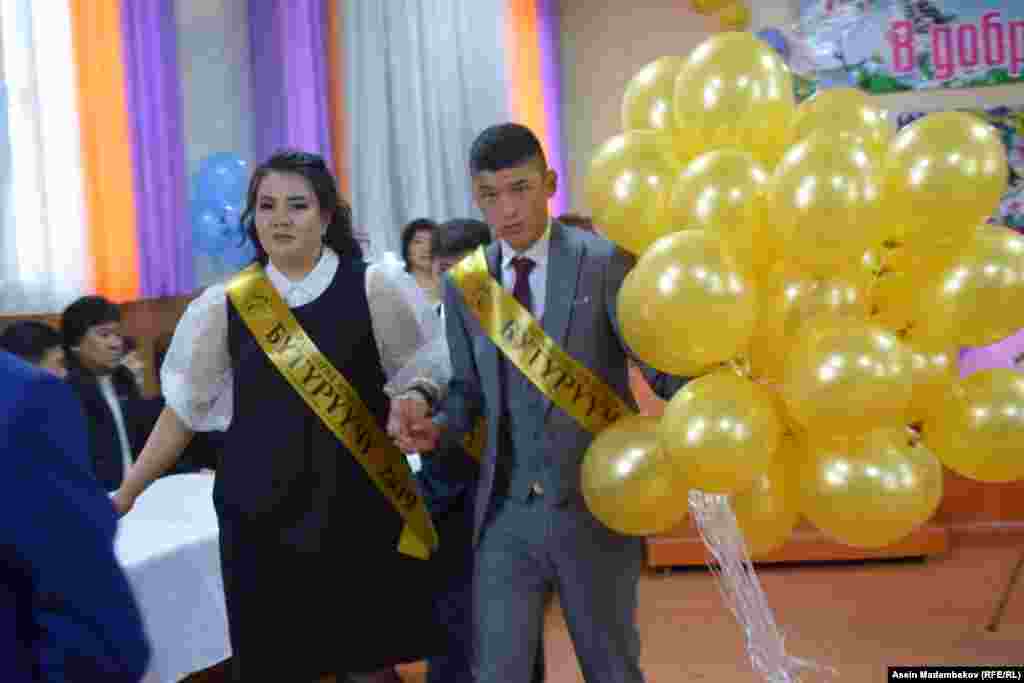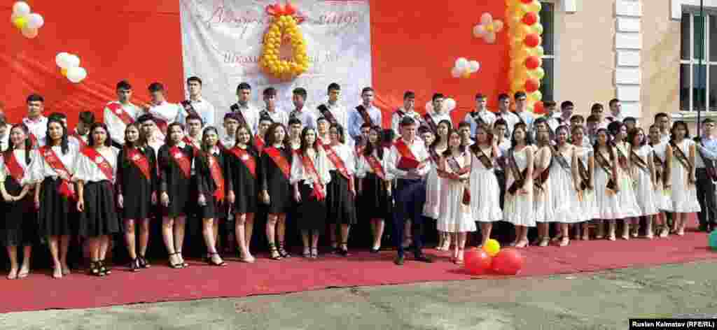 Мектептин чоң залы жок болгондуктан бүтүрүүчүлөрдүн коштошуу салтанаты мектептин өрүкзарында өттү.