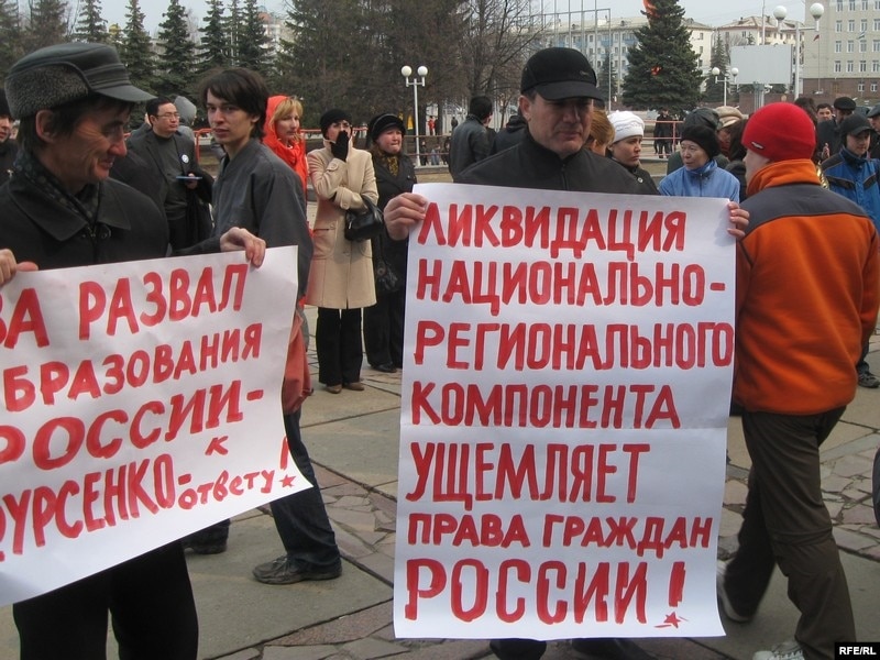 Бул жобо Россиянын түпкү элдеринин өз тилин, маданиятын жана тарыхын терең окутууга мүмкүндүк бербей тургандыгы тууралуу митингде таасын айтылды, дейт Азнабаев.