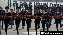 7-апрел курмандыктарына арналып, Ак үйдүн жанында расмий эстелик ачылып, "Ата Бейитте" куран окулду. Ага мурдагы өлкө башчысы Роза Отунбаева, президент Алмазбек Атамбаев, өкмөт башчы жана спикер баштаган аткаминерлер катышты. Президент Атамбаев эстеликтин ачылышында буларга токтолду: